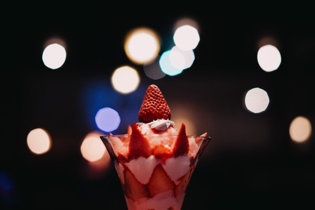 季節のパフェとして、ストロベリーパフェをカフェメニューに追加しています。旬のフルーツを街中で気軽に食べられたら嬉しいですよね。